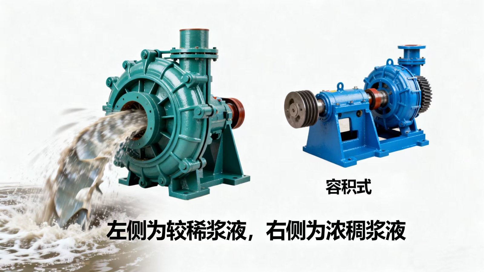 Two slurry pumps: centrifugal (thin slurry) and displacement (thick).http://1